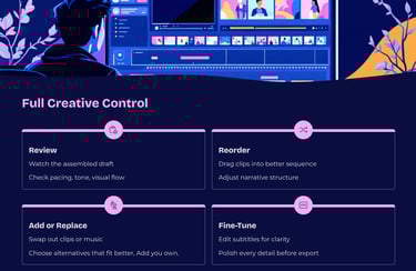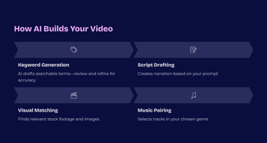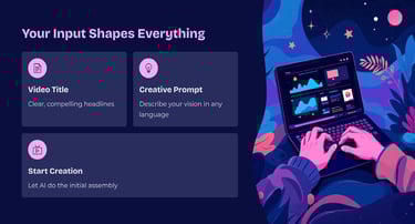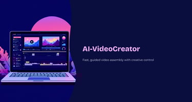 AI‑VideoCreator helps you quickly assemble compelling videos using AI narration, smart key-wording, and curated stock media. It is not a literal “type a prompt, get a perfectly matched video generator".
