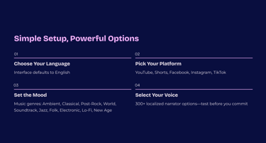 Our AI-driven platform supports multilingual options, enabling users worldwide to create videos effortlessly in their preferred language.