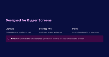 Produce videos with a streamlined workflow: simple tools designed to reduce the complexity of editing and production.