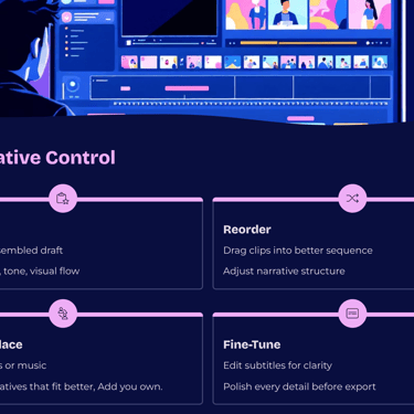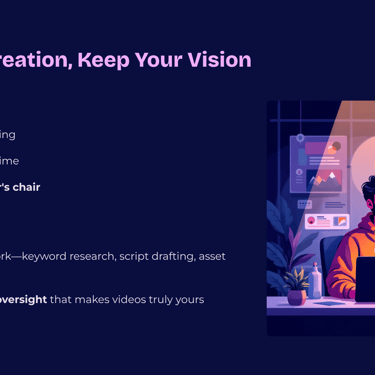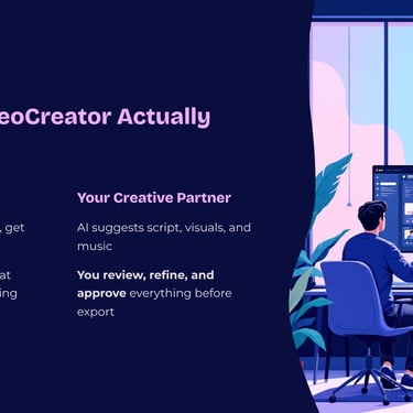 AI‑VideoCreator helps you quickly assemble compelling videos using AI narration, smart key-wording, and curated stock media. It is not a literal “type a prompt, get a perfectly matched video” generator.